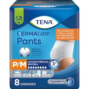 TENA Pants Dermacare é uma roupa íntima descartável e unissex de rápida absorção, que proporciona ao usuário ativo segurança e proteção da pele. Um produto hipoalergênico com tecido respirável e macio que ajuda na prevenção de irritações, permitindo que a pele esteja sempre saudável e seca. A excepcional segurança deve-se à tecnologia antivazamento que absorve rapidamente grandes quantidades de urina mantendo-a longe da pele de forma que, mesmo sentado ou deitado durante muito tempo, o usuário permanece seco e confortável, reduzindo significativamente o risco de infecções cutâneas. É indicado para perdas de urina severa.