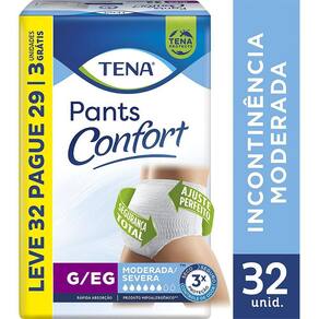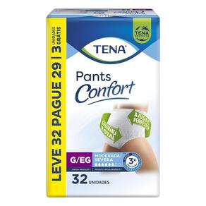 Tena Pants Confort é uma Roupa Íntima Descartável e Unissex de rápida absorção, proporcionando ao usuário ativo facilidade de uso, discrição e segurança. É indicado para perdas de urina moderada a severa. A excepcional segurança deve-se à tecnologia High Soft, que absorve rapidamente mesmo grandes quantidades de urina mantendo-a longe da pele de forma que, mesmo sentado ou deitado durante muito tempo, o usuário permanece seco e confortável, reduzindo significativamente o risco de irritações ou infecções cutâneas