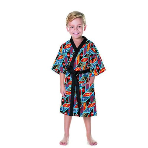 Roupão Aveludado Infantil Quimono Liga da Justiça P O roupão aveludado da coleção Liga da Justiça estampa os símbolos dos heróis que formam essa super poderosa equipe, sempre prontos para mais uma aventura no combate ao crime. Ele possui o jeito Lepper, com um tecido aveludado, que além de aquecer, também é super macio, e traz praticidade por ser felpudo no verso, apresentando uma absorção ainda melhor. O pós banho, quando estamos perto dos nossos heróis favoritos, pode ser mais alegre, mais divertido, mais Lepper