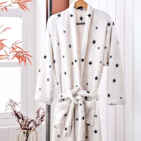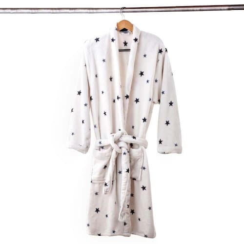 Confeccionado em microfibra 100% poliéster. Seu tecido blanket com toque extra soft proporciona maciez e acalento para dar mais conforto e estilo após o banho. O modelo, como o nome já sugere, nos brinda com uma estampa estrelada, espalhando diversas mini estrelas ao longo da peça. Roupão com bolsos. Perfeito para a saída do banho com conforto e estilo! Foto meramente ilustrativa.