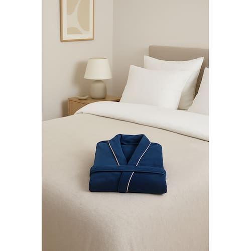 Seu tecido plush peluciado proporciona um toque incrivelmente macio, que acaricia a pele com delicadeza e aquece na medida certa. Confeccionado em 100% poliéster com gramatura de 300g/m², o roupão une leveza e isolamento térmico, garantindo praticidade e conforto ao mesmo tempo. O acabamento cuidadoso, aliado às cores discretas e lisas, traz sofisticação e charme a uma peça essencial para o inverno.