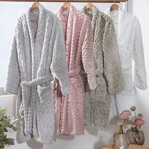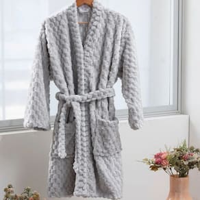 Sua estrutura é em formato de gomos, o que o torna lindo e charmoso. Seu tecido plush Peluciado proporciona um toque incrivelmente macio, que acaricia a pele com delicadeza e aquece na medida certa. Confeccionado em 100% poliéster com gramatura de 280g/m², o roupão une leveza e isolamento térmico, garantindo praticidade e conforto ao mesmo tempo. O acabamento cuidadoso, aliado às cores discretas, traz sofisticação e charme a uma peça essencial para o inverno.