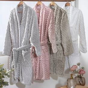 Sua estrutura é em formato de um desing 3D, o que o torna lindo e charmoso. Seu tecido plush Peluciado proporciona um toque incrivelmente macio, que acaricia a pele com delicadeza e aquece na medida certa. Confeccionado em 100% poliéster com gramatura de 280g/m², o roupão une leveza e isolamento térmico, garantindo praticidade e conforto ao mesmo tempo. O acabamento cuidadoso, aliado às cores discretas, traz sofisticação e charme a uma peça essencial para o inverno.