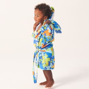 O roupão infantil é uma peça que pode ser usada em diversas situações, como na praia ou na piscina. Feito de tecido absorvente e leve, o roupão infantil é ideal para envolver as crianças após um mergulho, mantendo-as aquecidas e secas. Além disso, o roupão pode ser utilizado para proteger do sol enquanto as crianças brincam na praia ou à beira da piscina.Os roupões são estampados e com capuz, confeccionados em tecido felpa aveludada 100% algodão, garantindo excelente absorção, toque suave e carinhoso à pele do bebê. Possuem cinto costurado nas laterais, para melhor ajuste na amarração. As estampas são alegres e divertidas. As crianças vão adorar!