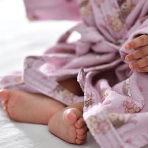 A saída do banho será mais gostosa e divertida com os roupões Turma da Mônica Baby. Confeccionados em tecido felpudo 100% algodão, garantem excelente absorção, toque suave e carinhoso à pele do bebê.