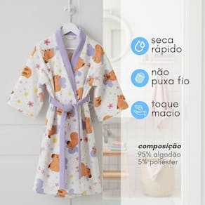 O Roupão Felpudo Infantil Quimono Capivara Lepper traz conforto, praticidade e muita diversão para a rotina das crianças. Com estampa alegre e modelagem tipo quimono, ele veste do tamanho 2 ao 7, acompanhando o crescimento dos pequenos com excelente durabilidade.