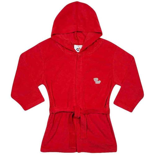 Ideal para praia, piscina e natação, o roupão infantil vermelho Tip Top possui capuz e é atoalhado. Tecido leve, facilita a secagem, seca e protege sem pesar.