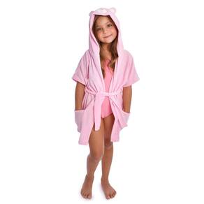Ideal para praia, piscina e natação, o roupão ursinho rosa da Everly possui mangas curtas, cordão ajustavel, capuz com orelhinhas e é atoalhado. Tecido leve, facilita a secagem, seca e protege sem pesar.