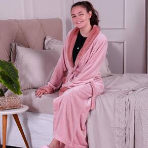 Roupão Longo Microfibra Flannel M Gola Punho Toque Pelo Coelho Rosê Místico A Tessi desenvolveu esse este maravilhoso roupão para te deixar quentinho e protegido do frio Ele possui a gola com a sherpa lã de carneiro e o seu corpo possui a microfibra flannel que é aquela microfibra que tem o toque mais macio e suave. Se surpreenda com esse apaixonante Roupão