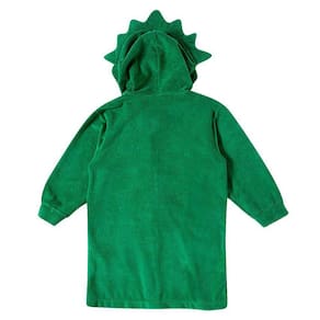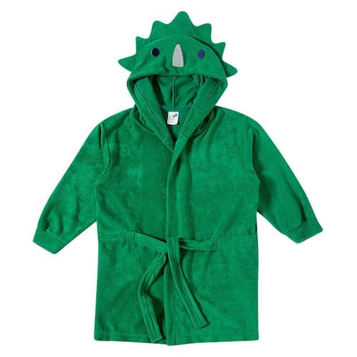 Perfeito para aproveitar os momentos de saída da praia e piscina, o roupão bebê e infantil Dino Verde Tip Top possui capuz e é atoalhado. Possui detalhes de dino no capuz para completar o charme.