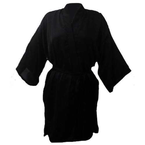 Roupão Quimono Preto Tamanho MRoupão quimono preto, tamanho médio com modelagem ampla possui mangas 3/4 e fechamento por amarração. Super confortável e macia para o seu pós banho.Composição: 100% poliesterDimensão: tamanho médio al. 96cm ombro. 54cm circunferência. 1,30 mt larg. 66cm