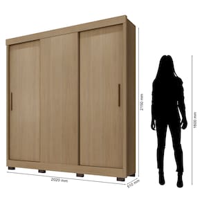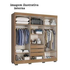 Roupeiro 203m com 3 Portas de Correr 3 Gavetas - Nature Móveis Leão - Marrom