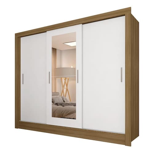 O Guarda Roupa Casal 3 Portas de Correr Com 2 Espelhos Aurora oferece uma solução prática para a organização de roupas e pertences, ao mesmo tempo em que contribui para a estética do seu quarto. Maximiza o uso do espaço disponível e fornece uma solução de armazenamento elegante!