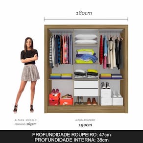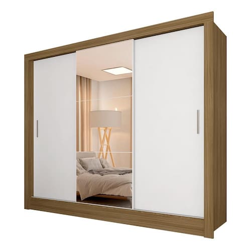O Guarda Roupa Casal 3 Portas de Correr Com 3 Espelhos Aurora oferece uma solução prática para a organização de roupas e pertences, ao mesmo tempo em que contribui para a estética do seu quarto. Maximiza o uso do espaço disponível e fornece uma solução de armazenamento elegante!