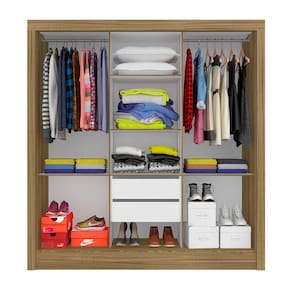 Materiais - MDP - Corrediças metálicas - Puxadores em polietileno - Cabideiros em madeira - Pintura em FF Fosco (Finish Foil) - Tonalidade: Boreal/Branco