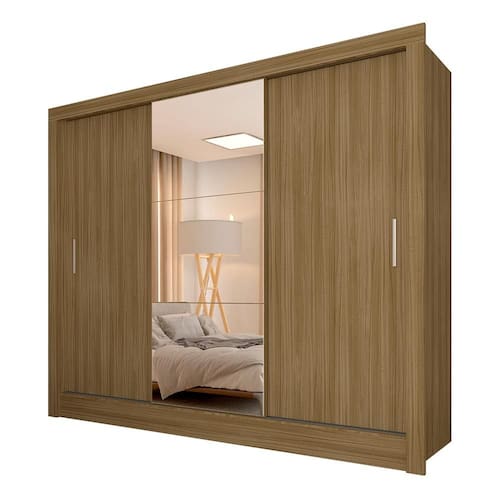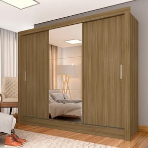 Roupeiro 3 Portas Casal Com 3 Espelhos Aurora Boreal - M. Arapongas - Marrom Cacau