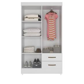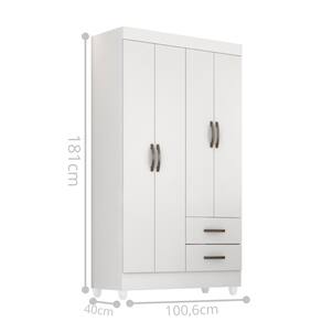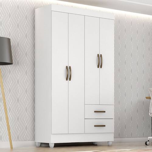 Feito em MDP. Contém 4 portas, 1 cabideiro em alumínio e 2 gavetas com corrediças metálicas facilitando a abertura e deslizamento.
