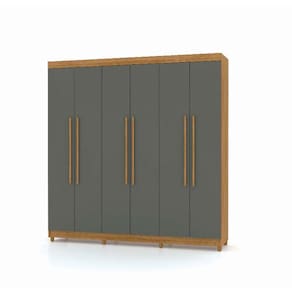 Produzido em MDP, 6 Portas, 2 Gavetas internas com corrediças metálicas., Cabideiro e calceiro em alumínio, Pés de madeira opcional na montagem, Puxadores em MDF com design moderno