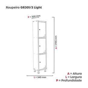 3 Portas: Amplo espaço interno com 3 grandes compartimentos, ideal para quem precisa de um roupeiro funcional e com grande capacidade de armazenamento.