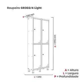 4 Portas: Amplo espaço interno com 2 grandes compartimentos, ideal para quem precisa de um roupeiro funcional e com grande capacidade de armazenamento.