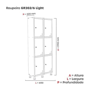 6 Portas: Amplo espaço interno com 6 grandes compartimentos, ideal para quem precisa de um roupeiro funcional e com grande capacidade de armazenamento.