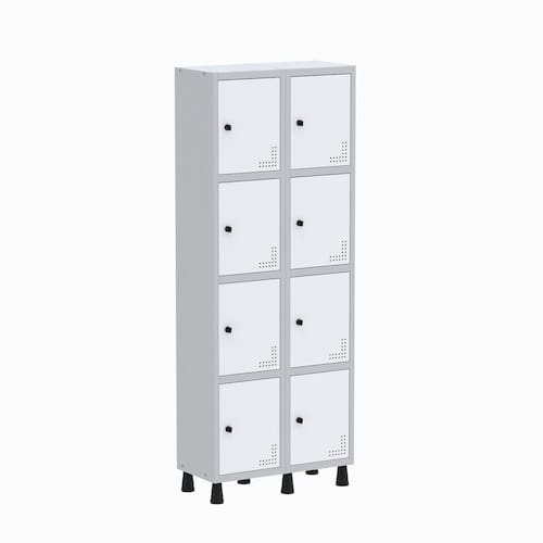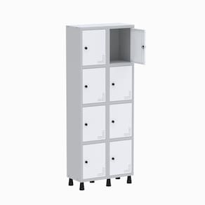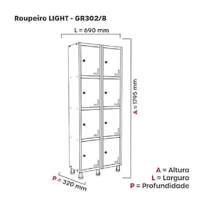 Armário Roupeiro de Aço totalmente montável, dispensa a utilização de parafusos, estrutura em chapas #24 e #26 (0,60mm e 0,45mm) conta com uma porta com estampos circulares em formação triangular para ventilação, sistema de fechamento de varão de 3 pontos, através de pitão para cadeado. Em conformidade com as normas NR17. Acabamento da Porta: Pintura Ambiente Principal: Escritório Complexidade da Montagem: Média: pode ser montado por mais de uma pessoa e/ou necessite de maior conhecimento para montagem Cor: Cinza/Branco Cor do Produto: Cinza/Branco Cor Interna: Cinza/Branco Escala de Brilho: Semi-Fosco Escala de Brilho da Porta: Semi-Brilho Itens Inclusos: 1 Armário e Manual de Montagem. Linha ou Coleção: Aço Manual de Montagem e Instalação: https://product-hub-prd.madeiramadeira.com.br/931931/documents/e3f6677b-84ba-4046-9840-dd0d8be95e340135Roupeiro20Linha20Light.pdf Material da Porta: Aço Material do Puxador da Porta: Poliestireno Material dos Pés: Polipropileno Material Principal: Aço Necessita Montagem: Sim Origem do Produto: Nacional Pés Reguláveis: Sim Peso: 22,3962 kg Possui Espelho: Não Possui Pés: 04 Possui Portas: 08 Possui Prateleiras: Não Recomendações de Uso, Manutenção e Limpeza: Utilizar um pano levemente umedecido com água, para finalizar utilizar um pano seco. Sapatas Niveladoras: Sim Sistema de Montagem: Parafuso Suporta Até (kg): 20 kg Tipo de Dobradiça/Corrediça da Porta: Aço Tipo de Puxador da Porta: Externo