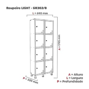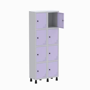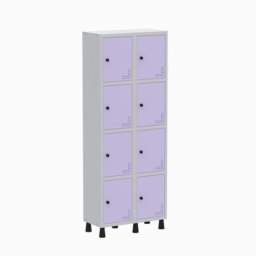 Armário Roupeiro de Aço totalmente montável, dispensa a utilização de parafusos, estrutura em chapas #24 e #26 (0,60mm e 0,45mm) conta com uma porta com estampos circulares em formação triangular para ventilação, sistema de fechamento de varão de 3 pontos, através de pitão para cadeado. Em conformidade com as normas NR17. Acabamento da Porta: Pintura Ambiente Principal: Escritório Complexidade da Montagem: Média: pode ser montado por mais de uma pessoa e/ou necessite de maior conhecimento para montagem Cor: Cinza/Lilás Cor do Produto: Cinza/Lilas Cor Interna: Cinza/Lilas Escala de Brilho: Semi-Fosco Escala de Brilho da Porta: Semi-Brilho Itens Inclusos: 1 Armário e Manual de Montagem. Linha ou Coleção: Aço Manual de Montagem e Instalação: https://product-hub-prd.madeiramadeira.com.br/931933/documents/05097045-9e28-479e-8e78-6a9f3f638d210135Roupeiro20Linha20Light.pdf Material da Porta: Aço Material do Puxador da Porta: Poliestireno Material dos Pés: Polipropileno Material Principal: Aço Necessita Montagem: Sim Origem do Produto: Nacional Pés Reguláveis: Sim Peso: 22,3962 kg Possui Espelho: Não Possui Pés: 04 Possui Portas: 08 Possui Prateleiras: Não Recomendações de Uso, Manutenção e Limpeza: Utilizar um pano levemente umedecido com água, para finalizar utilizar um pano seco. Sapatas Niveladoras: Sim Sistema de Montagem: Parafuso Suporta Até (kg): 20 kg Tipo de Dobradiça/Corrediça da Porta: Aço Tipo de Puxador da Porta: Externo