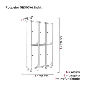 Roupeiro Aco Light 3v 06 Portas Gr303/6pri Cinza/Azul