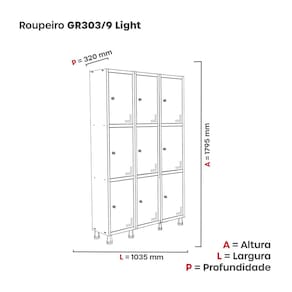 Roupeiro Aço Light 3v 09 Portas Gr303/9 Cinza/Branco