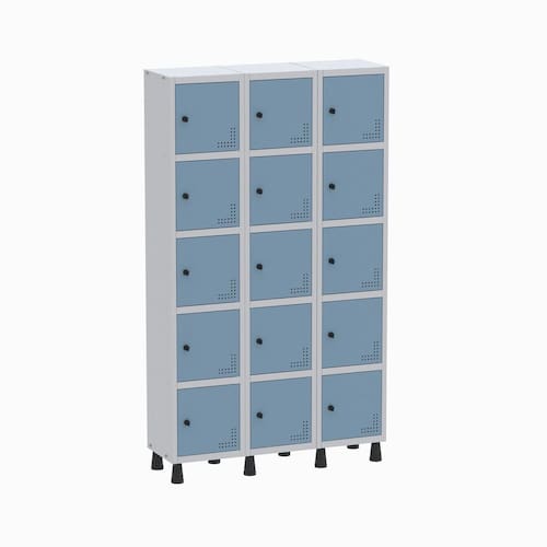 Armário Roupeiro de Aço totalmente montável, dispensa a utilização de parafusos, estrutura em chapas #24 e #26 (0,60mm e 0,45mm) conta com uma porta com estampos circulares em formação triangular para ventilação, sistema de fechamento de varão de 3 pontos, através de pitão para cadeado. Em conformidade com as normas NR17. Acabamento da Porta: Pintura Ambiente Principal: Escritório Complexidade da Montagem: Média: pode ser montado por mais de uma pessoa e/ou necessite de maior conhecimento para montagem Cor: Cinza/Azul Cor do Produto: Cinza/Azul Cor Interna: Cinza/Azul Dali Escala de Brilho: Semi-Fosco Escala de Brilho da Porta: Semi-Brilho Itens Inclusos: 1 Armário,Kit de ferragens e Manual de Montagem. Linha ou Coleção: Aço Manual de Montagem e Instalação: https://product-hub-prd.madeiramadeira.com.br/932226/documents/4355f702-4ba5-4522-8fcf-4c6382533fab0131Roupeiro20Linha20Light.pdf Material da Porta: Aço Material do Puxador da Porta: Poliestireno Material dos Pés: Polipropileno Material Principal: Aço Necessita Montagem: Sim Origem do Produto: Nacional Pés Reguláveis: Sim Peso: 30,6837 kg Possui Espelho: Não Possui Pés: 04 Possui Portas: 10 Possui Prateleiras: Não Recomendações de Uso, Manutenção e Limpeza: Utilizar um pano levemente umedecido com água, para finalizar utilizar um pano seco. Sapatas Niveladoras: Sim Sistema de Montagem: Parafuso Suporta Até (kg): 20 kg Tipo de Dobradiça/Corrediça da Porta: Aço Tipo de Puxador da Porta: Externo