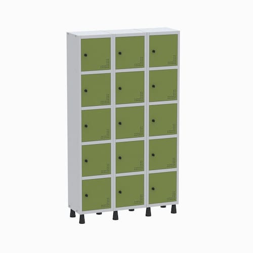 Armário Roupeiro de Aço totalmente montável, dispensa a utilização de parafusos, estrutura em chapas #24 e #26 (0,60mm e 0,45mm) conta com uma porta com estampos circulares em formação triangular para ventilação, sistema de fechamento de varão de 3 pontos, através de pitão para cadeado. Em conformidade com as normas NR17. Acabamento da Porta: Pintura Ambiente Principal: Escritório Complexidade da Montagem: Média: pode ser montado por mais de uma pessoa e/ou necessite de maior conhecimento para montagem Cor: Cinza/Verde Cor do Produto: Cinza/Verde Cor Interna: Cinza/Verde miró Escala de Brilho: Semi-Fosco Escala de Brilho da Porta: Semi-Brilho Itens Inclusos: 1 Armário,Kit de ferragens e Manual de Montagem. Linha ou Coleção: Aço Manual de Montagem e Instalação: https://product-hub-prd.madeiramadeira.com.br/932232/documents/21c8fc95-b7ab-49b6-9212-3b92cef252d20131Roupeiro20Linha20Light.pdf Material da Porta: Aço Material do Puxador da Porta: Poliestireno Material dos Pés: Polipropileno Material Principal: Aço Necessita Montagem: Sim Origem do Produto: Nacional Pés Reguláveis: Sim Peso: 30,6837 kg Possui Espelho: Não Possui Pés: 04 Possui Portas: 10 Possui Prateleiras: Não Recomendações de Uso, Manutenção e Limpeza: Utilizar um pano levemente umedecido com água, para finalizar utilizar um pano seco. Sapatas Niveladoras: Sim Sistema de Montagem: Parafuso Suporta Até (kg): 20 kg Tipo de Dobradiça/Corrediça da Porta: Aço Tipo de Puxador da Porta: Externo