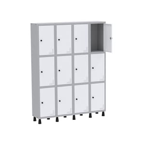 Durabilidade: Produzido em aço de alta resistência, com acabamento que protege contra ferrugem e danos causados pelo uso diário. Ambiente Principal: Área de Serviço Complexidade da Montagem: Média: pode ser montado por mais de uma pessoa e/ou necessite de maior conhecimento para montagem Cor: Cinza/Branco Cor da Porta: Cinza Cor do Produto: Cinza/Branco Formato do Armário: Retangular Itens Inclusos: Um roupeiro 12 portas Manual de Montagem e Instalação: https://product-hub-prd.madeiramadeira.com.br/961896/documents/07ba8950-b06a-4fa7-8183-48de4c267e292484327387017296057820358.pdf Marca: Pandin Móveis Material Principal: Aço Necessita Montagem: Sim Origem do Produto: Nacional Peso Suportado por Compartimento (Kg): 15 kg Porta com chave: Não Quantidade de Colunas do Armário: 4 Quantidade de Linhas do Armário: 3 Suporta Até (kg): 180 kg Tipo de Armário Multiuso: Locker