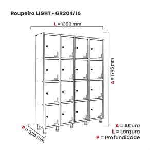 Roupeiro Aço Light 4v 16 Portas Gr304/16 Cinza/Preto
