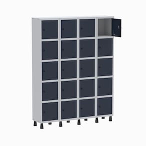 Armário Roupeiro de Aço totalmente montável, dispensa a utilização de parafusos, estrutura em chapas #24 e #26 (0,60mm e 0,45mm) conta com uma porta com estampos circulares em formação triangular para ventilação, sistema de fechamento de varão de 3 pontos, através de pitão para cadeado. Em conformidade com as normas NR17. Acabamento da Porta: Pintura Ambiente Principal: Escritório Complexidade da Montagem: Média: pode ser montado por mais de uma pessoa e/ou necessite de maior conhecimento para montagem Cor: Cinza/Azul Cor do Produto: Cinza/Azul Cor Interna: Cinza/Azul Delrei Escala de Brilho: Semi-Fosco Escala de Brilho da Porta: Semi-Brilho Itens Inclusos: 1 Armário, Manual de Montagem e Kit de ferragens Linha ou Coleção: Aço Manual de Montagem e Instalação: https://product-hub-prd.madeiramadeira.com.br/932236/documents/7f24dd7f-e0b7-4770-9617-b587f5c177970132Roupeiro20Linha20Light.pdf Material da Porta: Aço Material do Puxador da Porta: Poliestireno Material dos Pés: Polipropileno Material Principal: Aço Necessita Montagem: Sim Origem do Produto: Nacional Pés Reguláveis: Sim Peso: 40,3989 kg Possui Espelho: Não Possui Pés: 04 Possui Portas: 20 Possui Prateleiras: Não Recomendações de Uso, Manutenção e Limpeza: Utilizar um pano levemente umedecido com água, para finalizar utilizar um pano seco. Sapatas Niveladoras: Sim Sistema de Montagem: Parafuso Suporta Até (kg): 20 kg Tipo de Dobradiça/Corrediça da Porta: Aço Tipo de Puxador da Porta: Externo