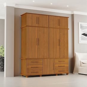 Esse Armário conta com um design clássico e simples, somando na decoração de seu quarto ou closet, com o espaço amplo para você se organizar. Ele conta 4 portas maiores, 6 gavetas, 2 prateleiras internas, varal para cabides, armário inferior com 1 porta e armário superior com 4 portas.