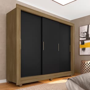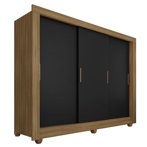 Detalhes Técnicos - MDP 12mm e 15mm - Acabamento em FF (Finish Foil) - Medidas: A: 190cm x L: 170cm x P: 47cm - Tonalidade: Boreal/Preto - Puxadores em Polietileno - Cabideiro em Madeira - Pés sem regulagem em Polietileno - Prateleiras suportam até 5kg distribuídos
