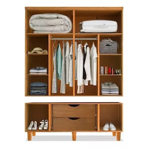 Com sua estrutura toda em madeira de reflorestamento, suas portas e laterais possuem o requadro em madeira, com o centro de fechamento(almofada) em MDF. Peças internas como prateleira, fundo e laterais de gavetas, bases e fechamento do fundo também são em MDF e MDP. Acabamento interno com partes em verniz nitro e outras em cera premium de acabamento.