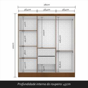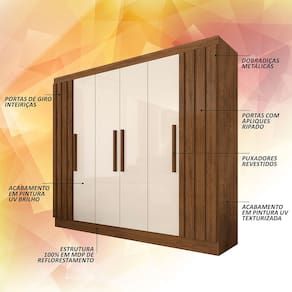 Detalhes Técnicos Medidas do Produto Montado: A: 200cm x L: 180cm x P: 47cm - MDP 12mm e 15mm - Acabamento em Pintura UV - Tonalidade: Freijó/Off Premium - Puxadores: MDF 18mm - Cabideiros: Em Alumínio - Gavetas com Corrediças Metálicas - Prateleiras suportam até 5kg distribuídos - Gavetas suportam até 5kg distribuídos
