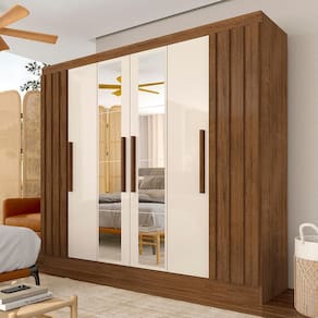 O Roupeiro Casal Camille com espelho traz estilo, espaço e praticidade no seu quarto! O charme do ripado nas portas e a resistência dos puxadores em MDF traz um design incrível para o seu ambiente.