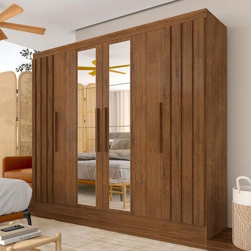 O Roupeiro Casal Camille com espelho traz estilo, espaço e praticidade no seu quarto! O charme do ripado nas portas e a resistência dos puxadores em MDF traz um design incrível para o seu ambiente.