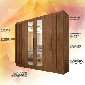 Detalhes Técnicos Medidas do Produto Montado: A: 200cm x L: 180cm x P: 47cm - MDP 12mm e 15mm - Acabamento em Pintura UV - Tonalidade: Freijó - Puxadores: MDF 18mm - Cabideiros: Em Alumínio - Gavetas com Corrediças Metálicas - Prateleiras suportam até 5kg distribuídos - Gavetas suportam até 5kg distribuídos - Contém espelhos: SIM - Medida do Espelho: 445mm x 240mm x 3mm