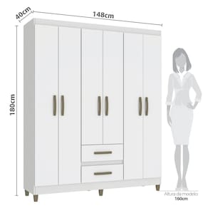 Roupeiro Coimbra 6 Portas 2 Gavetas Branco