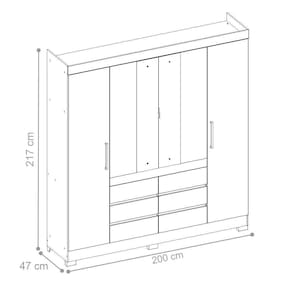 Feito em MDP, além de possuir 4 portas, 6 gavetas e 7 prateleiras internas.