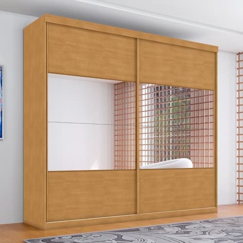 Feito em MDF 4 gavetas com corrediças telescópicas, 2 Portas deslizantes, 6 prateleiras e 4 cabideiro.
