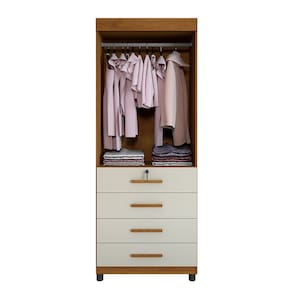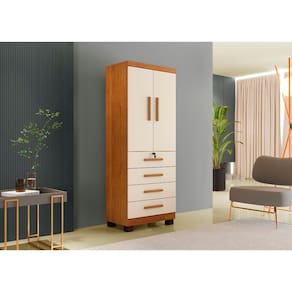O Roupeiro New Maia da Benetil é compacto e prático. Possui bom espaço interno, possibilitando armazenar seus objetos de forma mais organizada. Conta com quatro gavetas, uma dela com chave, oferecendo mais segurança. As gavetas são em corrediças telescópicas, o que garante uma maior abertura. As portas de bater dão a ele um ar tradicional, mas com elementos que valorizam cada detalhe. O cabideiro é em alumínio o que dá mais segurança e resistência. Ele é compacto. Excelentes para quartos menores.Informações técnicas:Linha: Roupeiro MaiaMarca: Benetil MóveisEstilo: ModernoOrigem do produto: NacionalMatéria-prima da estrutura: MDPAmbiente principal: Quarto / OutrosTipo de pintura: Fosco BrancoDe canto: NãoNecessita montagem: SimPossui espelho interno: NãoPossui espelho externo: NãoPossui pés: SimQuantidade de pés: 4Altura dos pés: 5cmMaterial dos pés: PVCPossui portas: SimQuantidade de portas: 2Tipo de portas: BaterMatéria-prima da porta: MDPTipo de puxador da porta: ExternoMatéria-prima dos puxadores: MadeiradoPossui prateleiras: NãoPossui gavetas: SimQuantidade de gavetas: 4Tipo de gaveta: ExternaTipo de corrediça da gaveta: TelescópicaPossui cabideiro: SimQuantidade de cabideiro: 1Matéria-prima do cabideiro: AlumínioDimensões do Produto:Altura: 191 cmLargura: 76 cmProfundidade: 45 cmPeso: 50kgGarantia do Fornecedor: 3 mesesRecomendações de uso/manutenção: Limpar com flanela limpa e seca. Não usar produtos abrasivos.