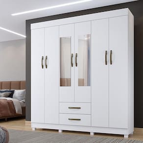 Roupeiro Copacabana Branco 6 Portas Com Espelho Benetil Móveis Branco O Roupeiro Com Espelho Copacabana 6 Portas Possui 04 Prateleiras, 02 Cabideiros Em Aluminio, 02 Gavetas Com Corredicas Telescopicas E Puxadores Em Pvc. Proporcionando Beleza E Organizacao Para Seu Quarto. Caracteristicas: Cor: Branco Acabamento: Pintura Uv Possui Pe: 08 Possui Portas: 06 Possui Gavetas:02 Tipo Porta: Bater Necessita Montagem: Sim Complexidade Montagem: Media Indicacao De : Quarto