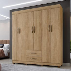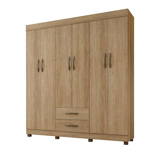 O Roupeiro Sem Espelho Copacabana 6 Portas Possui 04 Prateleiras, 02 Cabideiros Em Aluminio, 02 Gavetas Com Corredicas Telescopicas E Puxadores Em Pvc. Proporcionando Beleza E Organizacao Para Seu Quarto.