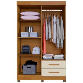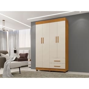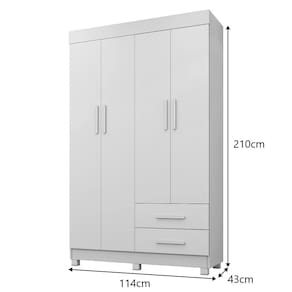 O Roupeiro Copacabana quatro portas é o móvel ideal para organizar seu quarto e deixá-lo ainda mais prático! Com design clássico, ele possui elementos que dão a ele um toque de modernidade. O design clean deixa o ambiente mais aconchegante. A parte interna ampla possui várias prateleiras, possibilitando o armazenamento de cobertores, travesseiros e outros acessórios. Conta com cabideiro em alumínio, o que garante um suporte para maior peso. As gavetas são externas oferecendo mais espaço e comodidade para organizar as coisas. É a solução para pequenos espaços e perfeito para deixar o quarto mais prático e bonito!Características:Linha: Roupeiro CopacabanaEstilo: ModernoOrigem do produto: NacionalMatéria-prima da estrutura: MDPAmbiente principal: QuartoDe canto: NãoNecessita montagem: SimPossui espelho externo: NãoPossui espelho interno: NãoPossui pés: Sim, 6.Altura dos pés: 5cmMaterial dos pés: PVCPossui portas: SimQuantidade de portas: 4Tipo de portas: BaterTipo de puxador da porta: ExternoMatéria-prima dos puxadores: PVCPossui prateleiras: SimQuantidade de prateleiras: 4Possui gavetas: SimQuantidade de gavetas: 2Tipo de gaveta: ExternaTipo de corrediça da gaveta: TelescópicaGaveta com chave: NãoPossui cabideiro: SimMaterial do cabideiro: AlumínioDimensões do produto montado:Altura: 210 cmLargura: 114 cmProfundidade: 43 cmPeso: 82kgGarantia do fornecedor: 3 mesesRecomendações de uso/manutenção: Limpar com flanela limpa e seca. Não usar produtos abrasivos.