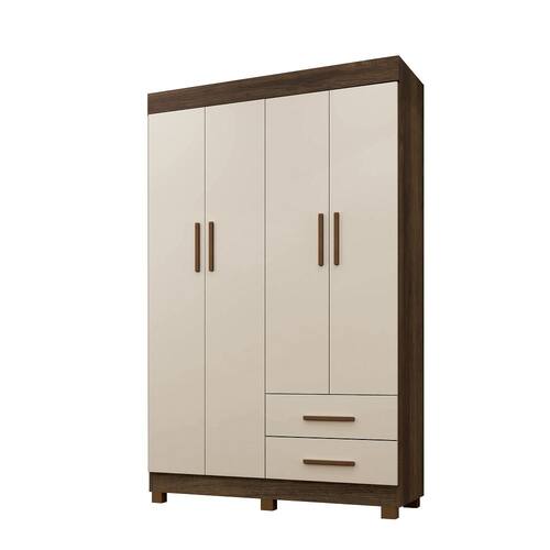 O Roupeiro Copacabana quatro portas é o móvel ideal para organizar seu quarto e deixá-lo ainda mais prático! Com design clássico, ele possui elementos que dão a ele um toque de modernidade. O design clean deixa o ambiente mais aconchegante. A parte interna ampla possui várias prateleiras, possibilitando o armazenamento de cobertores, travesseiros e outros acessórios. Conta com cabideiro em alumínio, o que garante um suporte para maior peso. As gavetas são externas oferecendo mais espaço e comodidade para organizar as coisas. É a solução para pequenos espaços e perfeito para deixar o quarto mais prático e bonito!Características:Linha: Roupeiro CopacabanaEstilo: ModernoOrigem do produto: NacionalMatéria-prima da estrutura: MDPAmbiente principal: QuartoDe canto: NãoNecessita montagem: SimPossui espelho externo: NãoPossui espelho interno: NãoPossui pés: Sim, 6.Altura dos pés: 5cmMaterial dos pés: PVCPossui portas: SimQuantidade de portas: 4Tipo de portas: BaterTipo de puxador da porta: ExternoMatéria-prima dos puxadores: PVCPossui prateleiras: SimQuantidade de prateleiras: 4Possui gavetas: SimQuantidade de gavetas: 2Tipo de gaveta: ExternaTipo de corrediça da gaveta: TelescópicaGaveta com chave: NãoPossui cabideiro: SimMaterial do cabideiro: AlumínioDimensões do produto montado:Altura: 210 cmLargura: 114 cmProfundidade: 43 cmPeso: 82kgGarantia do fornecedor: 3 mesesRecomendações de uso/manutenção: Limpar com flanela limpa e seca. Não usar produtos abrasivos.