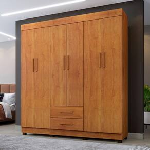 Características: Linha: Roupeiro Copacabana Estilo: Moderno Origem do produto: Nacional Matéria-prima da estrutura: MDP Ambiente principal: Quarto De canto: Não Necessita montagem: Sim Possui espelho externo: Não Possui espelho interno: Não Possui pés: Sim, 8. Altura dos pés: 5cm Material dos pés: PVC Possui portas: Sim Quantidade de portas: 6 Tipo de portas: Bater Tipo de puxador da porta: Externo Matéria-prima dos puxadores: PVC Possui prateleiras: Sim Quantidade de prateleiras: 4 Possui gavetas: Sim Quantidade de gavetas: 2 Tipo de gaveta: Externa Tipo de corrediça da gaveta: Telescópica Gaveta com chave: Não Possui cabideiro: Sim Material do cabideiro: Alumínio